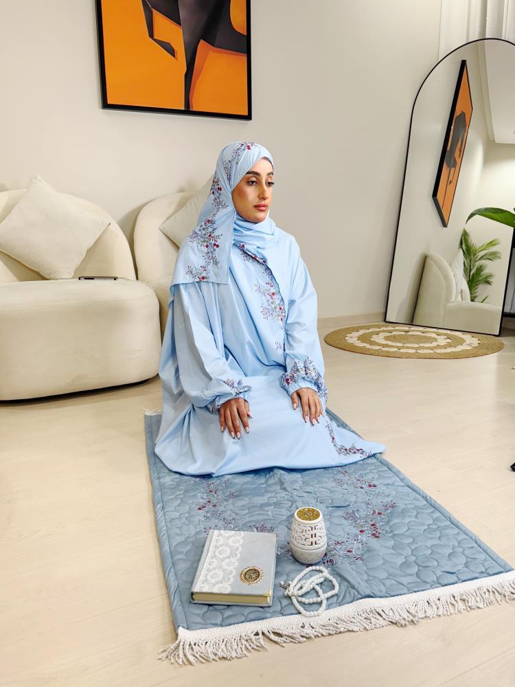 - سجادة صلاة (اسفنجية) فاخرة وبألوان هادئة خياطة وتطريز : ايدي عاملة محلية.